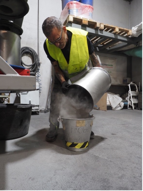 當(dāng)外殼廢料被送去進(jìn)行鋼材回收時,有價(jià)值的塑制品整體材料會在球磨機(jī)中進(jìn)行研磨,然后進(jìn)行篩選、均質(zhì)、干燥和混合。粉末樣品用粘合劑壓制并分成三份。