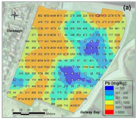 圖1. 在實(shí)施土壤修復(fù)項目的過程中采集到的樣本。左圖顯示為較差的采樣策略:采集的樣本數(shù)量不足,可能會出現(xiàn)大量的錯誤。右圖為正確的采樣方式:采集足夠數(shù)量的樣本,以確保場地各個區(qū)域的土壤都被檢測到。