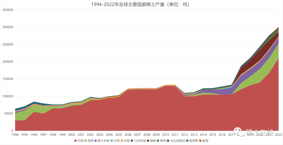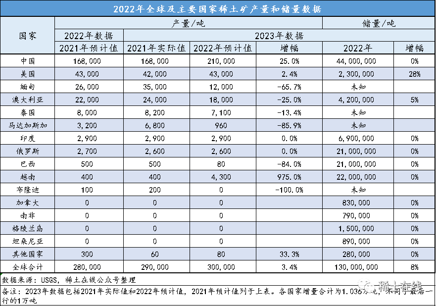 近日,美國(guó)地質(zhì)調(diào)查局(USGS)發(fā)布了2022年度全球稀土礦產(chǎn)量、儲(chǔ)量及美國(guó)稀土礦情況,下面對(duì)主要數(shù)據(jù)進(jìn)行整理,供參考。