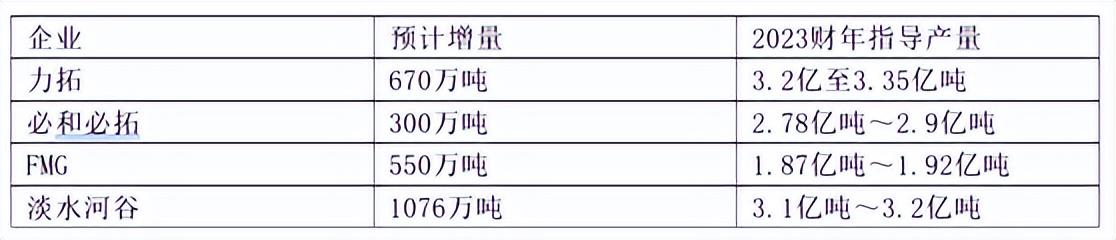 供應(yīng)端,對(duì)力拓、必和必拓、淡水河谷、FMG四大寡頭的2023財(cái)年鐵礦石產(chǎn)量指導(dǎo)情況來看,預(yù)計(jì)2023年四大礦山鐵礦石產(chǎn)銷量不減反增,增加約2600萬噸。根據(jù)發(fā)往中國(guó)比例估算,對(duì)國(guó)內(nèi)增量約為2000萬噸。