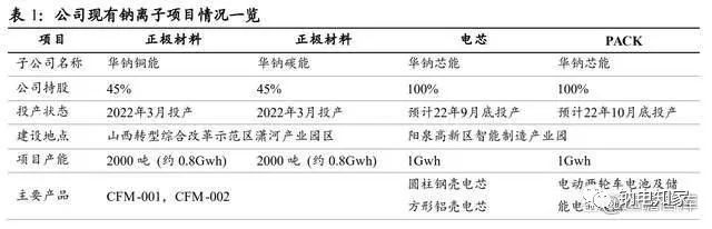 華鈉芯能同樣為 PACK 廠的運營主體,據(jù)公司官網(wǎng) 1Gwh 鈉離子 Pack 電池生產(chǎn)項目于 2022 年 7 月 25 日宣布正式開工,且該項目建設全面對標行業(yè)一流, 2022 年 10 月底投產(chǎn)。
