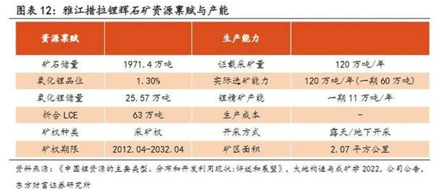 2008年,天齊盛合取得探礦權,2012年取得采礦權,期限20年。按計劃,該礦區(qū)采用露天及地下兩種開采方式,證載采礦量為120萬噸每年,其中一期60萬噸/年,鋰精礦產能為11萬噸/年。目前為緩建狀態(tài)。