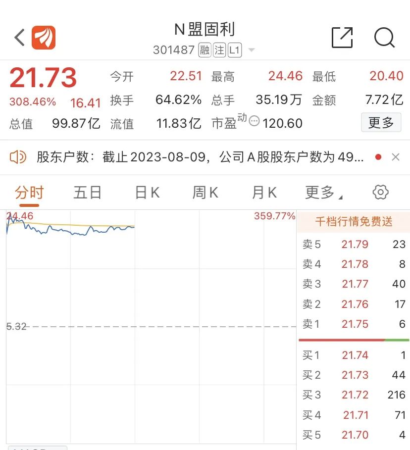 新股盟固利上市首日表現(xiàn)不俗。8月9日,盟固利登陸創(chuàng)業(yè)板,盤中一度漲超350%。