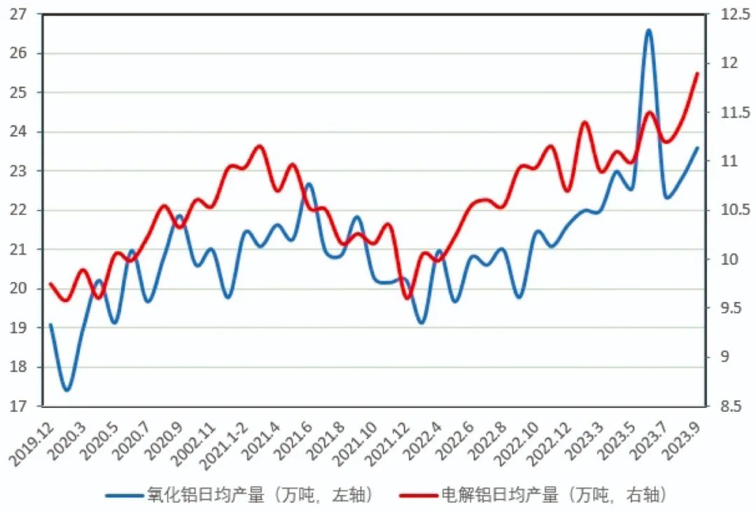 三是國內(nèi)鋁表觀消費(fèi)不及預(yù)期。當(dāng)前處于鋁消費(fèi)淡季,下游需求表現(xiàn)不及預(yù)期。9月份,鋁加工方面,國內(nèi)鋁下游加工龍頭企業(yè)開工率為63.8%,同比下降1.3%;房地產(chǎn)方面,房地產(chǎn)消費(fèi)依舊疲軟,恢復(fù)仍需時日。前三季度,房地產(chǎn)總體呈現(xiàn)持續(xù)低迷態(tài)勢;汽車方面,國家層面出臺了一系列促消費(fèi)政策,各地積極響應(yīng),相繼推出發(fā)放消費(fèi)券、購車補(bǔ)貼等措施,汽車消費(fèi)穩(wěn)中有增。前三季度,汽車行業(yè)市場總體呈現(xiàn)“淡季不淡,旺季更旺”的態(tài)勢。