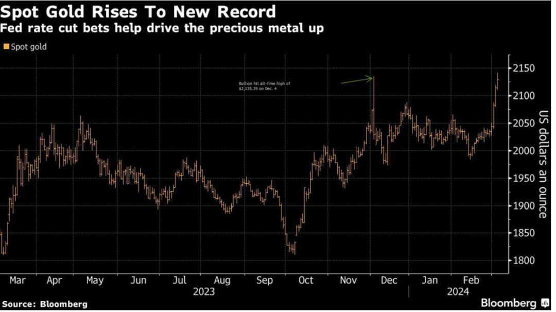 據(jù)多家機構預測,展望2024年的黃金市場,無論是金融屬性還是避險屬性,均有利于金價的上漲,看來黃金,還要乘風再飛一會了!