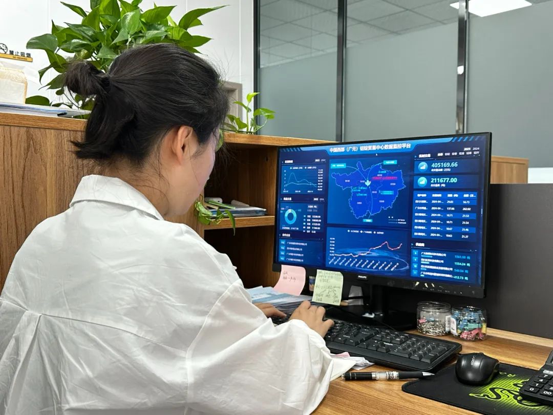 在貿(mào)易中心二樓大廳里,LED顯示屏上展示著鋁液交易明細(xì)表,以及鋁錠期貨行情走勢(shì)?!巴ㄟ^(guò)展示,貿(mào)易雙方能清晰了解鋁錠交易情況,安排計(jì)劃后期交易?!变X錠貿(mào)易中心負(fù)責(zé)人李繼軍表示。