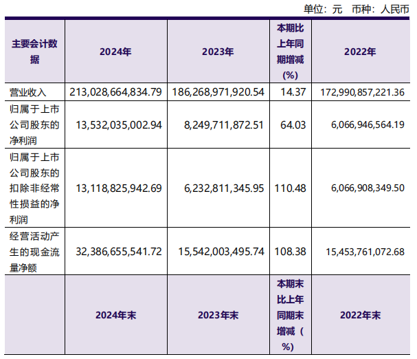 3月21日,洛陽鉬業(yè)發(fā)布的業(yè)績(jī)報(bào)告顯示,公司2024年?duì)I業(yè)收入首次邁入兩千億元門檻,為2130.29億元,同比增長(zhǎng)14.37%;歸母凈利潤(rùn)首破百億元,為135.32億元,同比增長(zhǎng)64.03%;扣非后歸母凈利潤(rùn)131.19億元,同比增長(zhǎng)110.48%;每股收益0.63元,同比增長(zhǎng)65.79%。