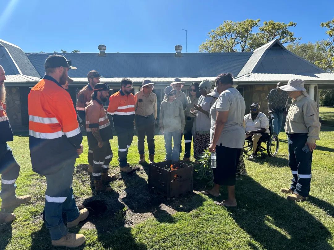 開鉆期間,當?shù)毓拍岚驳贤林M織舉辦了莊嚴的傳統(tǒng)儀式和土著文化培訓,對中方人員的到來表示熱烈歡迎。項目組全體成員、子午線礦業(yè)有限公司董事Gina、鉆探公司代表等受邀參加歡迎儀式。土著長老Helen女士發(fā)表講話,對西色國際多年來尊重、保護當?shù)卦∶裎幕z產(chǎn)的舉措表示感謝,將繼續(xù)友好支持公司在該區(qū)的勘查活動。