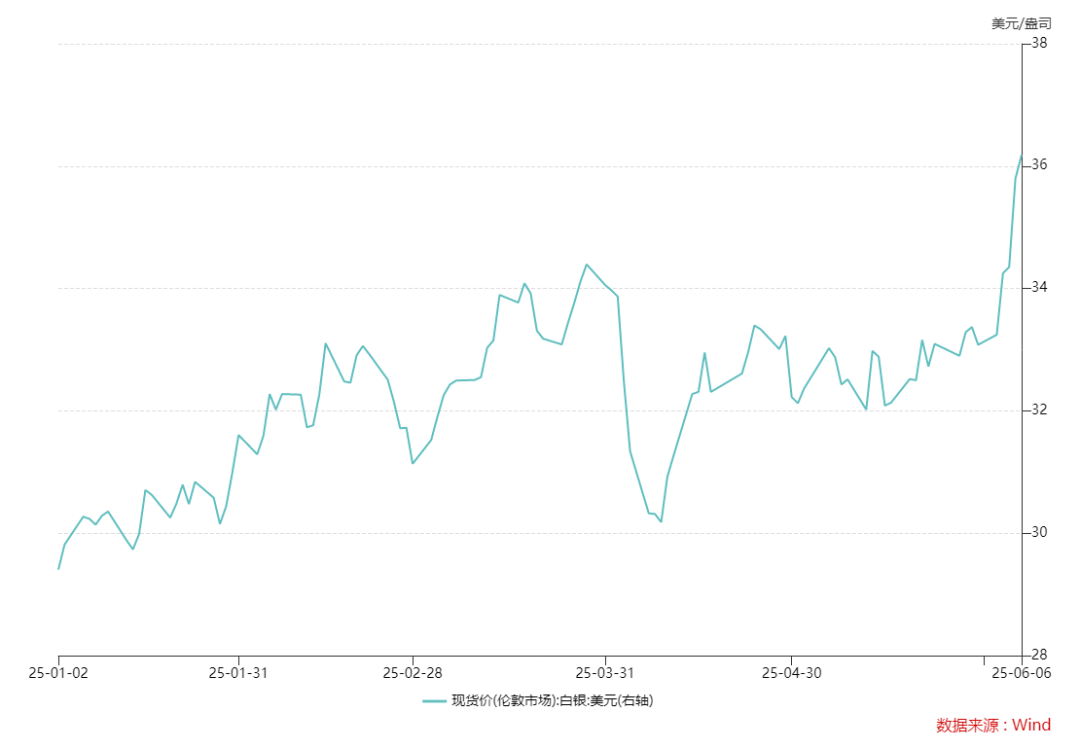 今年以來,在全球經(jīng)濟(jì)和政治不確定性日益加劇的背景下,包括白銀在內(nèi)的貴金屬價(jià)格受到避險(xiǎn)資金的支撐。從年初至今,現(xiàn)貨白銀已累計(jì)漲逾23%。6月6日,現(xiàn)貨白銀價(jià)格最高報(bào)每盎司36.19美元,站上自2012年以來的新高。