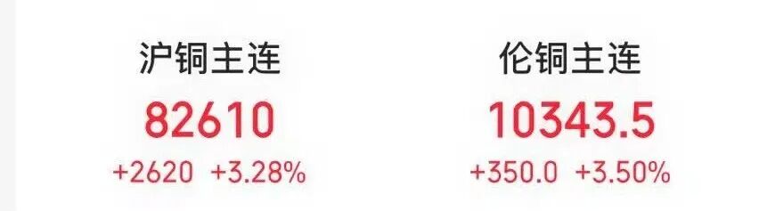 商品方面,全球銅價大幅上漲。倫銅價格漲3.50%,創(chuàng)2024年6月以來最高水平;滬銅價格漲超3%。